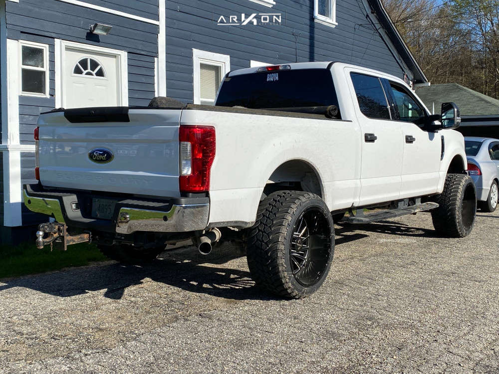 Yes they do! This 2019 Ford F-250 Super Duty 4WD is running ARKON OFF-ROAD Caesar 24x14 wheels, AMP Mud Terrain Attack Mt A 35"x13.5" tires with Rough Country Suspension Lift 2.5" suspension, and needs No trimming and has Slight rub at full turn. As you can see from the pics this wheel and tire combo can be done!** With this 2019 Ford F-250 Super Duty, the stance is Aggressive > 1" outside fender. Also remember spacers impact fitment, this ride is running None in front and None in rear.