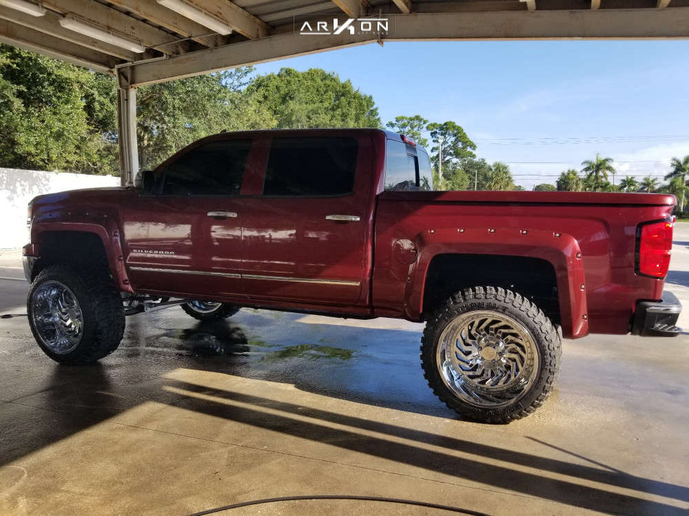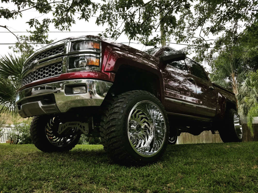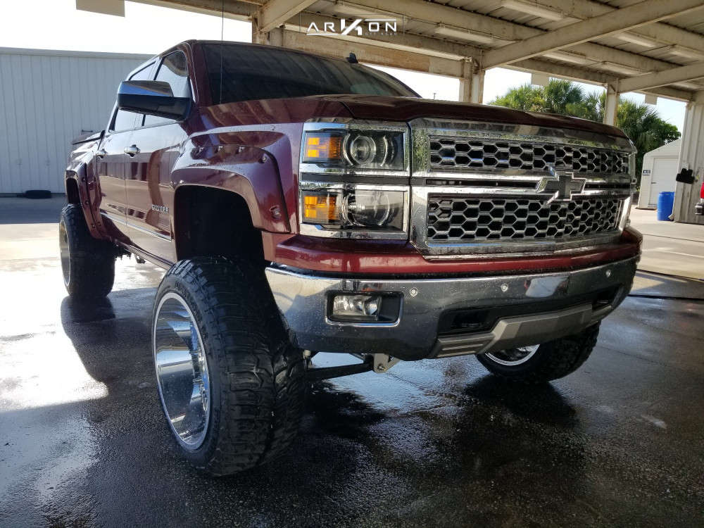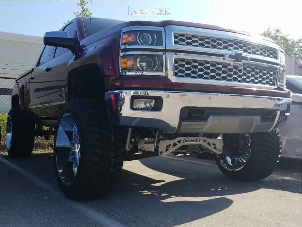 Yes they do! This 2014 Chevrolet Silverado 1500 RWD is running ARKON OFF-ROAD Crown Series Victory 24x14 wheels, Road One Atheon Mt 37"x13.5" tires with McGaughys Suspension Lift 9" suspension, and needs Major metal trimming and has Slight rub at full turn. As you can see from the pics this wheel and tire combo can be done!** With this 2014 Chevrolet Silverado 1500, the stance is Hella Stance >5". Also remember spacers impact fitment, this ride is running None in front and None in rear.