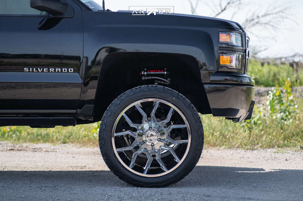 Do 24x14 -81 wheels on 35"x15.5" tires fit on a 2015 Chevrolet Silverado 1500 4WD with Rough Country Suspension Lift 7"?