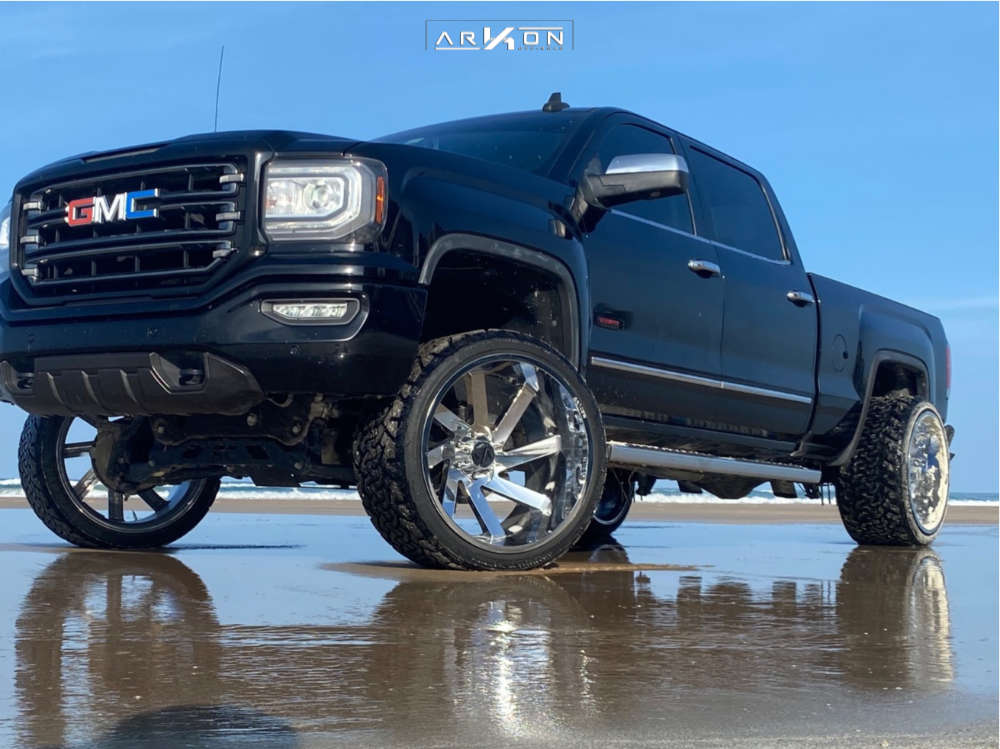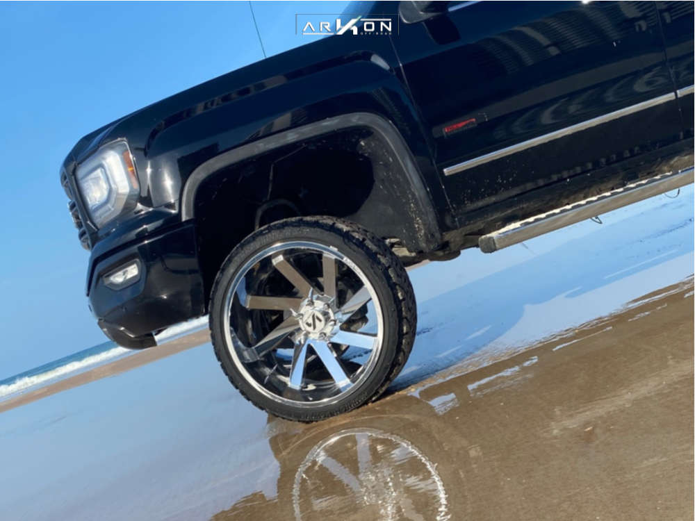 Yes they do! This 2016 GMC Sierra 1500 4WD is running ARKON OFF-ROAD Lincoln 24x14 wheels, Venom Power Terra Hunter X/T 33"x13.5" tires with Rough Country Suspension Lift 6" suspension, and needs Minor metal trimming and has Rubs. As you can see from the pics this wheel and tire combo can be done!** With this 2016 GMC Sierra 1500, the stance is Super Aggressive 3"-5". Also remember spacers impact fitment, this ride is running None in front and None in rear.