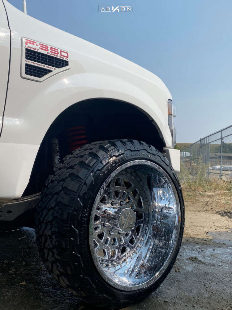 Yes they do! This 2008 Ford F-350 Super Duty 4WD is running ARKON OFF-ROAD Crown Series Triumph 24x14 wheels, Fury Offroad Country Hunter MTII 35"x13.5" tires with FOX Leveling Kit suspension, and needs Minor metal trimming and has Rubs. As you can see from the pics this wheel and tire combo can be done!** With this 2008 Ford F-350 Super Duty, the stance is Hella Stance >5". Also remember spacers impact fitment, this ride is running None in front and None in rear.