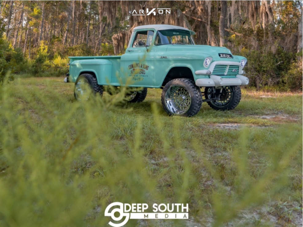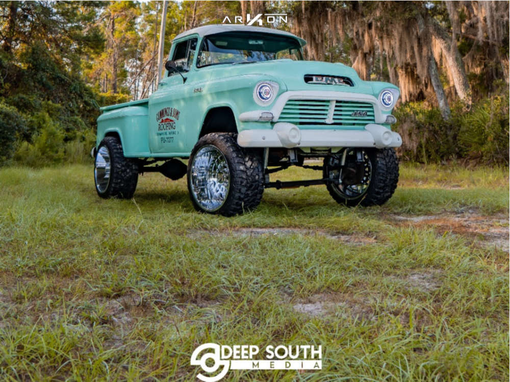 Yes they do! This 1957 Chevrolet C15/C1500 Pickup RWD is running ARKON OFF-ROAD Crown Series Triumph 24x14 wheels, Fury Offroad Country Hunter MTII 35"x15.5" tires with Custom Suspension Lift 8" suspension, and needs No trimming and has No rubbing or scrubbing. As you can see from the pics this wheel and tire combo can be done!** With this 1957 Chevrolet C15/C1500 Pickup, the stance is Super Aggressive 3"-5". Also remember spacers impact fitment, this ride is running None in front and None in rear.