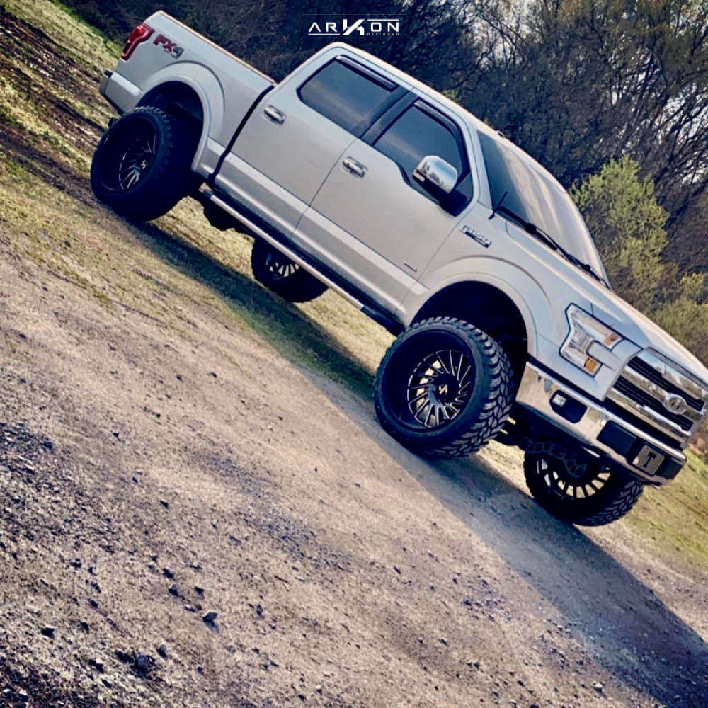 Yes they do! This 2015 Ford F-150 4WD is running ARKON OFF-ROAD Caesar 24x14 wheels, AMP Mud Terrain Attack MT A 35"x13.5" tires with Rough Country Suspension Lift 6" suspension, and needs Minor Plastic Trimming and has Rubs. As you can see from the pics this wheel and tire combo can be done!** With this 2015 Ford F-150, the stance is Super Aggressive 3"-5". Also remember spacers impact fitment, this ride is running None in front and None in rear.