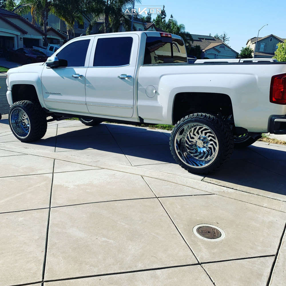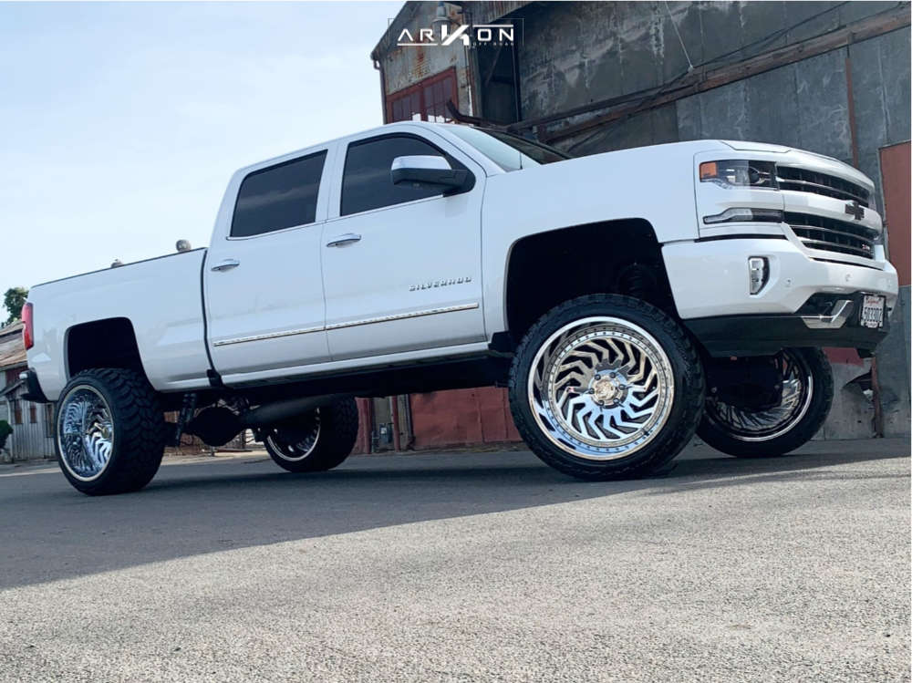 Yes they do! This 2016 Chevrolet Silverado 1500 4WD is running ARKON OFF-ROAD Crown Series Victory 24x14 wheels, AMP Mud Terrain Attack Mt A 35"x13.5" tires with TCS Suspension Lift 8.5" suspension, and needs Minor Plastic Trimming and has Rubs. As you can see from the pics this wheel and tire combo can be done!** With this 2016 Chevrolet Silverado 1500, the stance is Super Aggressive 3"-5". Also remember spacers impact fitment, this ride is running None in front and None in rear.