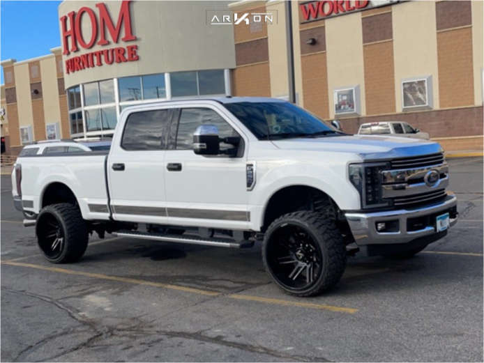 Yes they do! This 2017 Ford F-250 Super Duty 4WD is running ARKON OFF-ROAD DaVinci 24x14 wheels, Centara Terrena M/t 33"x12.5" tires with OEM Stock suspension, and needs Minor Plastic Trimming and has Slight rub at full turn. As you can see from the pics this wheel and tire combo can be done!** With this 2017 Ford F-250 Super Duty, the stance is Super Aggressive 3"-5". Also remember spacers impact fitment, this ride is running None in front and None in rear.