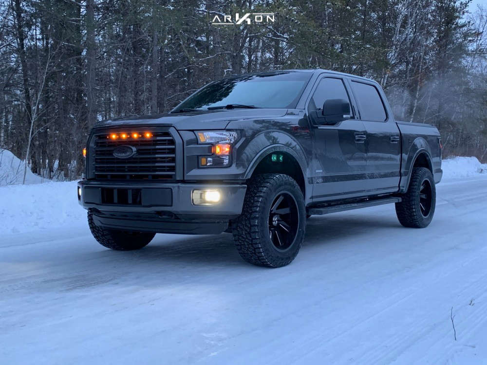 Yes they do! This 2016 Ford F-150 4WD is running ARKON OFF-ROAD Lincoln 20x10 wheels, Falken WildPeak AT3W 305/55 tires with FOX Leveling Kit suspension, and needs Minor Plastic Trimming and has Slight rub at full turn. As you can see from the pics this wheel and tire combo can be done!** With this 2016 Ford F-150, the stance is Aggressive > 1" outside fender. Also remember spacers impact fitment, this ride is running None in front and None in rear.