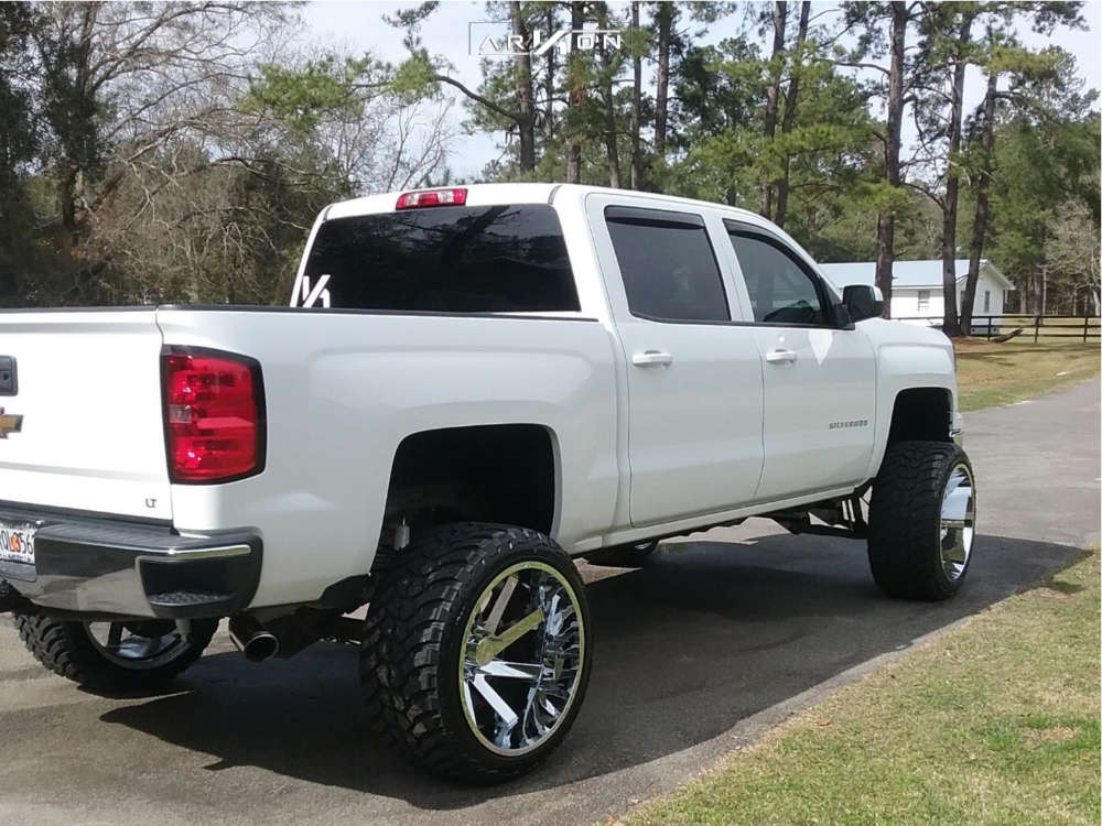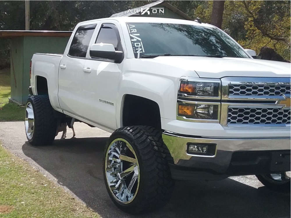 Yes they do! This 2014 Chevrolet Silverado 1500 RWD is running ARKON OFF-ROAD Lincoln 24x14 wheels, AMP Mud Terrain Attack Mt A 35"x13.5" tires with Superlift Suspension Lift 8" suspension, and needs Major metal trimming and has Slight rub at full turn. As you can see from the pics this wheel and tire combo can be done!** With this 2014 Chevrolet Silverado 1500, the stance is Hella Stance >5". Also remember spacers impact fitment, this ride is running None in front and 2" in rear.