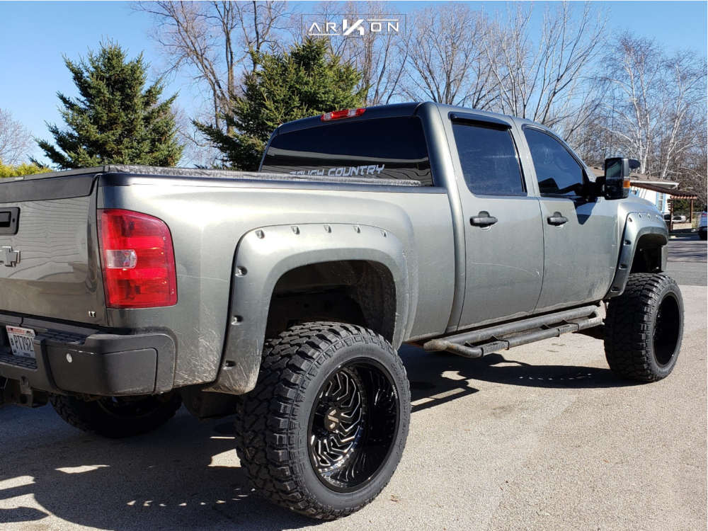 Yes they do! This 2011 Chevrolet Silverado 2500 HD 4WD is running ARKON OFF-ROAD Crown Series Victory 24x14 wheels, Fury Offroad Country Hunter MT 38"x15.5" tires with ReadyLIFT Suspension Lift 8" suspension, and needs Minor metal trimming and has Rubs. As you can see from the pics this wheel and tire combo can be done!** With this 2011 Chevrolet Silverado 2500 HD, the stance is Super Aggressive 3"-5". Also remember spacers impact fitment, this ride is running None in front and None in rear.
