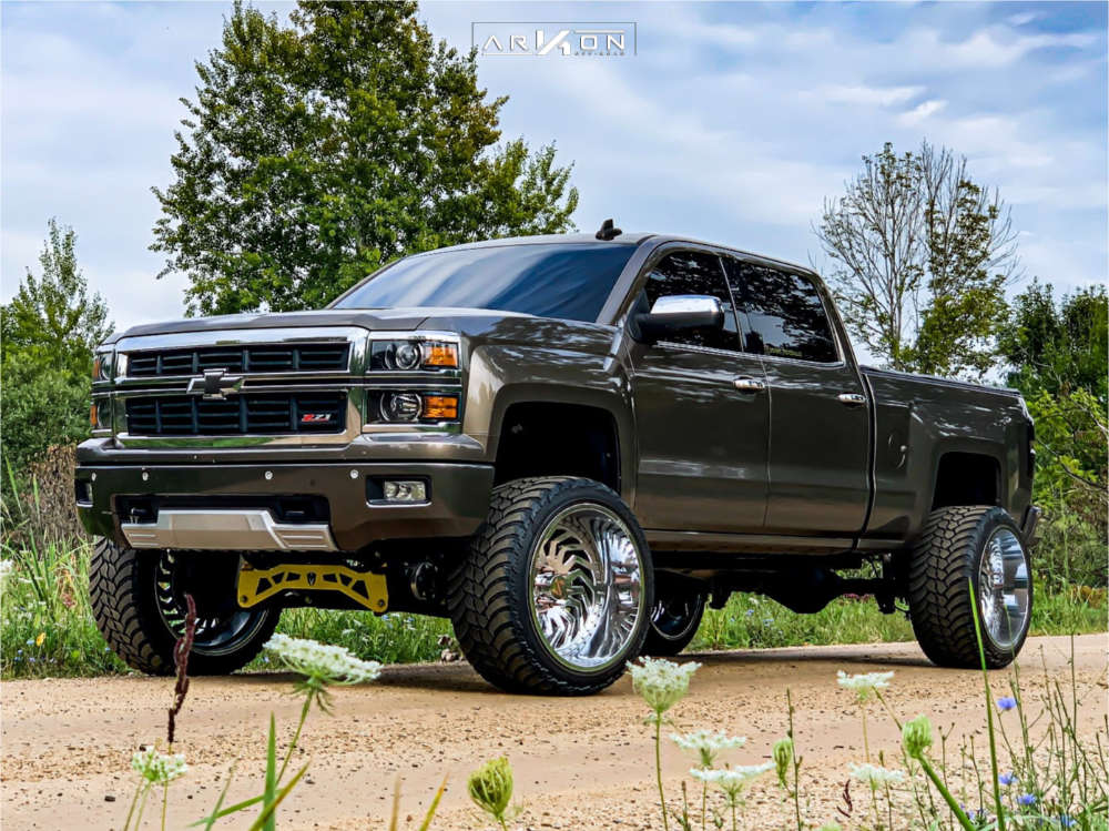 Yes they do! This 2015 Chevrolet Silverado 1500 4WD is running ARKON OFF-ROAD Crown Series Victory 24x14 wheels, AMP Mud Terrain Attack Mt A 35"x13.5" tires with McGaughys Suspension Lift 7" suspension, and needs Fenders rolled and trimming and has No rubbing or scrubbing. As you can see from the pics this wheel and tire combo can be done!** With this 2015 Chevrolet Silverado 1500, the stance is Hella Stance >5". Also remember spacers impact fitment, this ride is running None in front and 2" in rear.