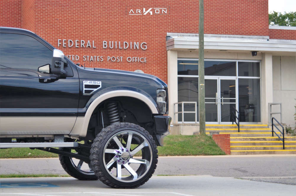 Yes they do! This 2010 Ford F-250 Super Duty 4WD is running ARKON OFF-ROAD Lincoln 26x14 wheels, Gladiator Xcomp Mt 37"x13.5" tires with Rough Country Suspension Lift 6" suspension, and needs No trimming and has Slight rub at full turn. As you can see from the pics this wheel and tire combo can be done!** With this 2010 Ford F-250 Super Duty, the stance is Hella Stance >5". Also remember spacers impact fitment, this ride is running None in front and None in rear.